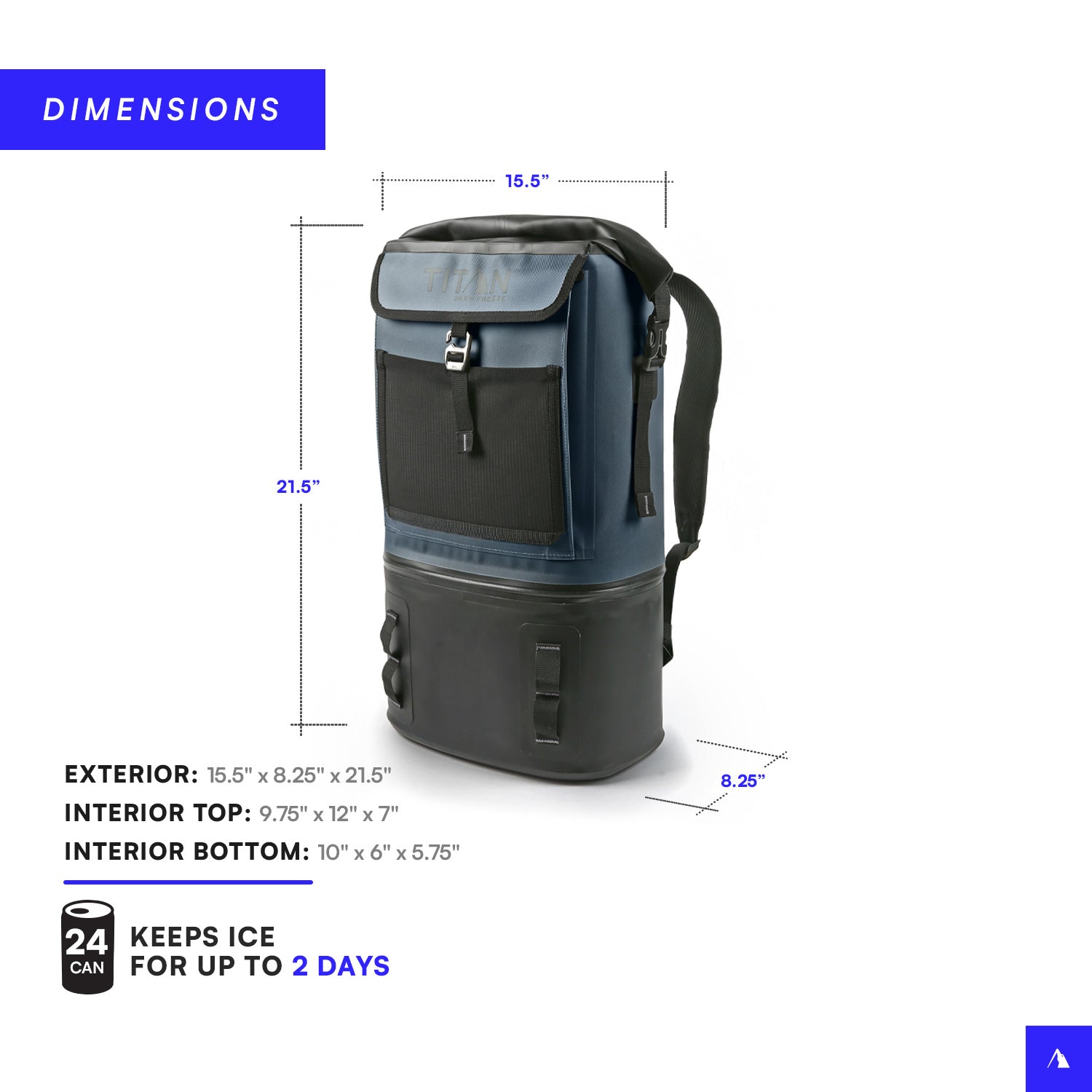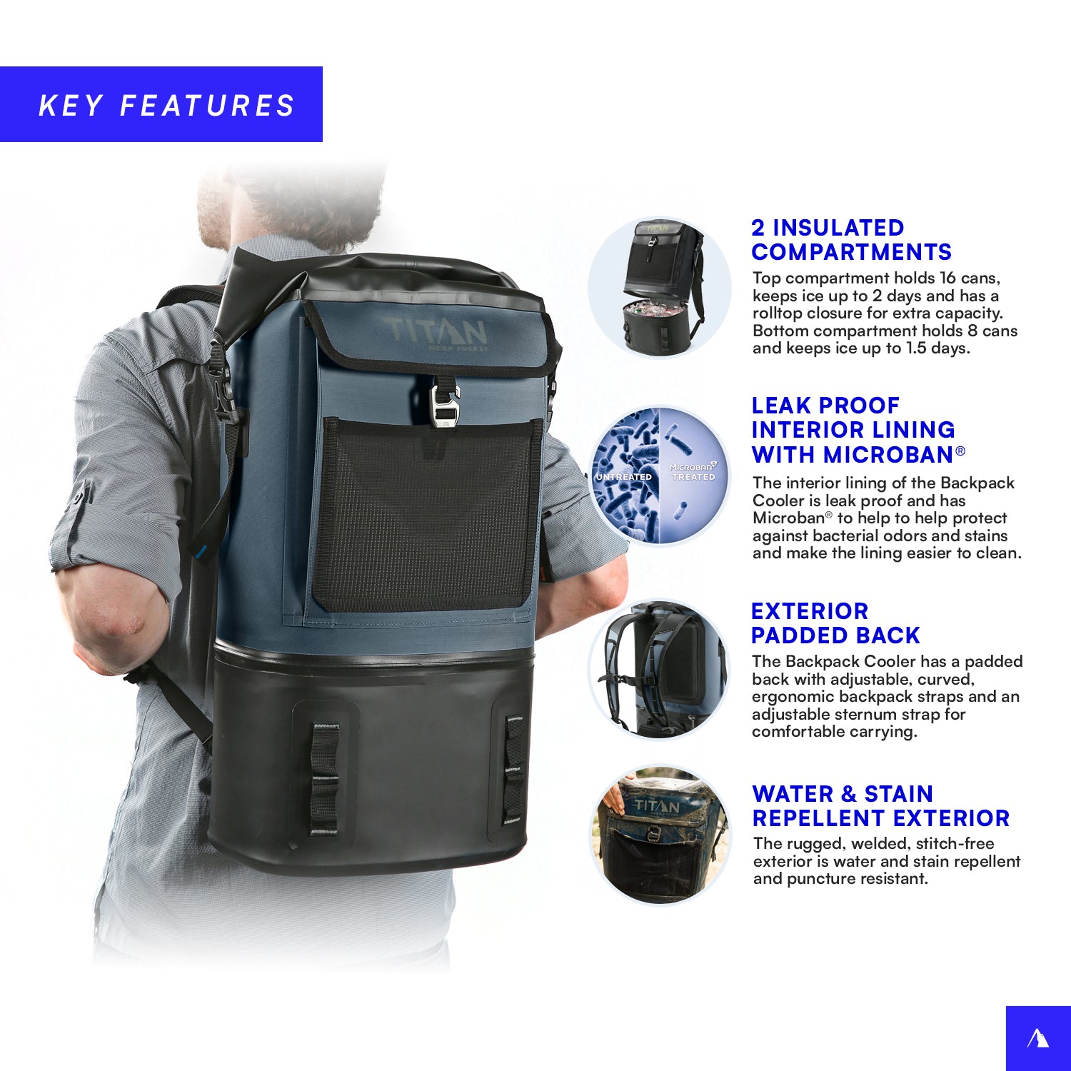 The high performance Titan by Arctic Zone™ Welded Backpack Cooler has a 24 Can Capacity, 2 insulated compartments and can keep ice up to 2 days*!